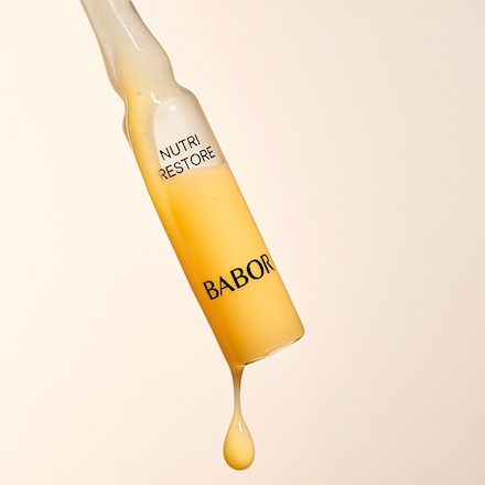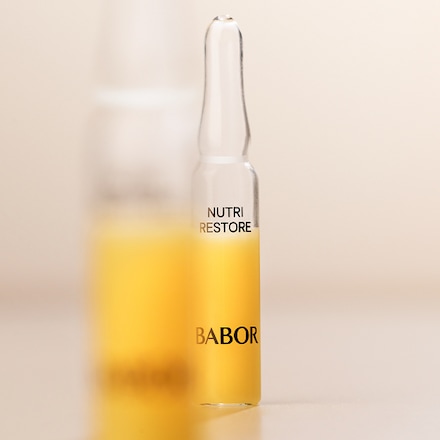 Die BABOR Ampoule Concentrates Nutri Restore 7 Ampoules vereinen insgesamt 19 verschiedene Aminosäuren sowie Mineralien, Lipide, Proteine und Vitamine. Die Intensiv-Hautpflege-Kur ist in der Lage die Hautbarriere nachhaltig zu stärken. Das ist deshalb wichtig, weil sich nur eine gesunde Hautbarriere gegenüber schädlichen Umwelteinflüssen zur Wehr setzen kann. Außerdem führt eine beschädigte und angegriffene Hautbarriere zu kontinuierlichen Feuchtigkeitsverlusten. All dem können Sie mit der Ampullen-Kur einen Riegel vorschieben. Nach sieben Tagen fühlt sich die Haut geschmeidiger an, hat einen schönen Glow entwickelt und besticht mit einem ebeneren Teint. Weitere wertvolle Inhaltsstoffe, wie Squalan und Arganöl, sind in den Formulierungen ebenso enthalten.Anwendung