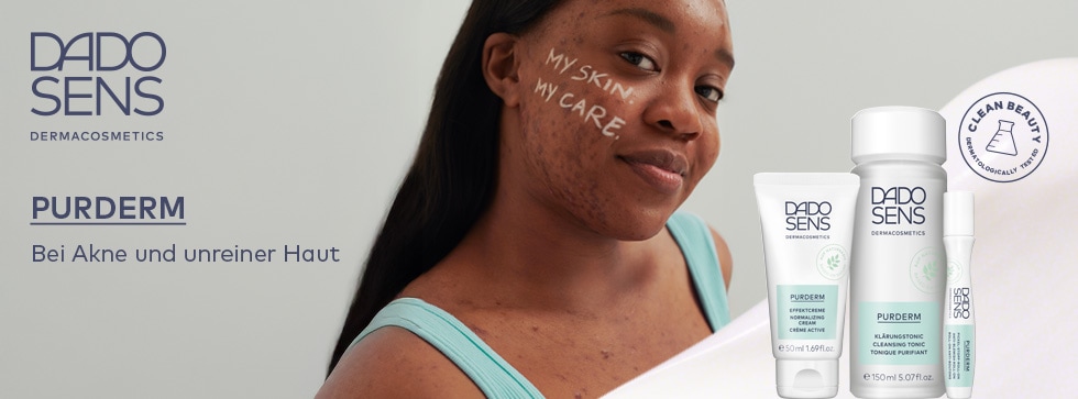 Besonders zu Unreinheiten neigende Haut kann sich mit der falschen Pflege noch schlimmer entwickeln. Cremes können die Haut zu sehr reizen oder zu fettreich sein und damit Pickel und Mitesser noch begünstigen. Mit den Pflegeprodukten von DADO SENS aus der PurDerm Serie erhalten Sie Produkte, die speziell auf die Bedürfnisse von unreiner Haut zugeschnitten sind.