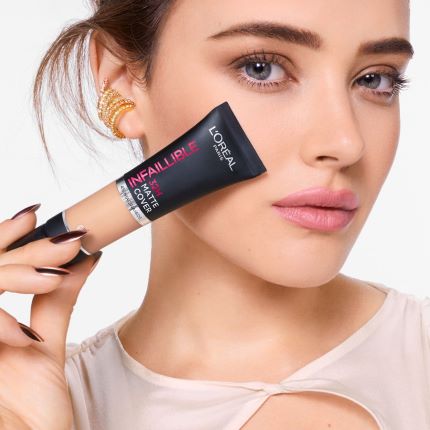 Wisch- und wasserfestDie Infaillible 32H Matte Cover Foundation von L‘Oréal Paris zeichnet sich durch eine sehr starke Deckkraft aus. Das Erscheinungsbild der Haut wird optisch korrigiert – ganz ohne Maskeneffekt.