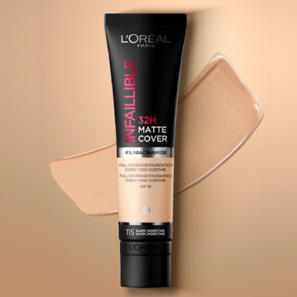 Mit 4% Niacinamid Die Infaillible 32H Matte Cover Foundation stärkt die Hautschutz Barriere für ein verbessertes Hautbild über die Zeit. Die Formel mit 4% Niacinamid sorgt für einen ebenmäßigen und mattierten Teint.