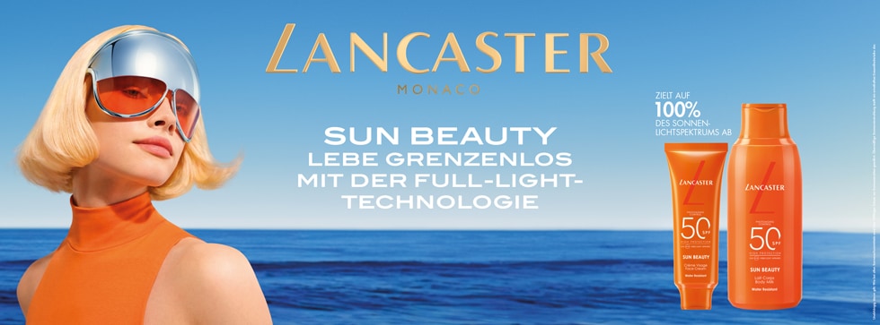 - Lancaster Sonnenpflege: Die bekannteste Produktlinie von Lancaster schützt deine Haut vor ungewollten Schäden durch Sonneneinstrahlung. Gleichzeitig ermöglicht sie ebenmäßige Bräune und eine lange Haltbarkeit des Sommer-Glows.