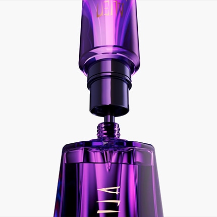 Der einzigartige Duft präsentiert sich im ikonischen Behälter von Mugler Alien als wahrer Blickfang. Seine tiefviolette Tönung, verziert mit schimmernden Goldelementen, verwandelt ihn in ein kostbares Juwel, das eine geheimnisvolle Anziehungskraft ausübt und modernes Design mit zeitloser Eleganz verbindet.