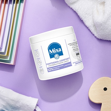 Mit 12 % pflanzlichem Glycerin, Omega 6 und 9 sowie Panthenol ist die Panthenol Comfort Hautberuhigende Creme von Mixa eigens auf die Bedürfnisse sensibler Haut abgestimmt. Panthenol beruhigt, wirkt entzündungshemmend und stärkt die natürliche Hautschutzbarriere. Glycerin versorgt die Haut mit Feuchtigkeit und wirkt dadurch Trockenheit und Schuppenbildung entgegen. Die Omega-Fettsäuren schützen vor Umwelteinflüssen und verbessern die Elastizität. Durch die parfümfreie, vom European Centre for Allergy Research Foundation (ECARF) zertifizierte Rezeptur lässt sich die Creme auch auf zu Allergien neigender Haut anwenden. Dermatologische Tests bestätigen dem Produkt außerdem eine sehr gute Verträglichkeit. Tragen Sie die Hautpflege nach der Reinigung oder zwischendurch nach Bedarf auf Gesicht, Hände oder Körper auf und massieren Sie die Creme mit sanft kreisenden Bewegungen ein.Anwendung